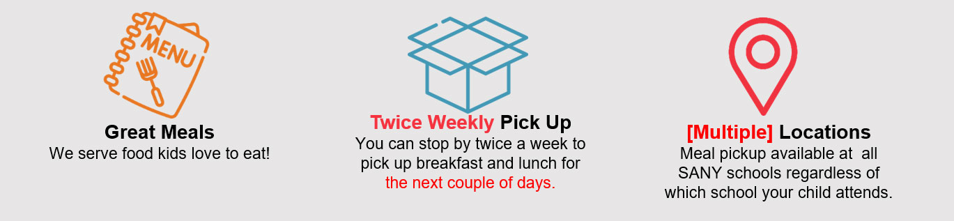SANY in collaboration with Chartwells has developed a [contactless drive through] meal service that will allow students greater access to food while at home.