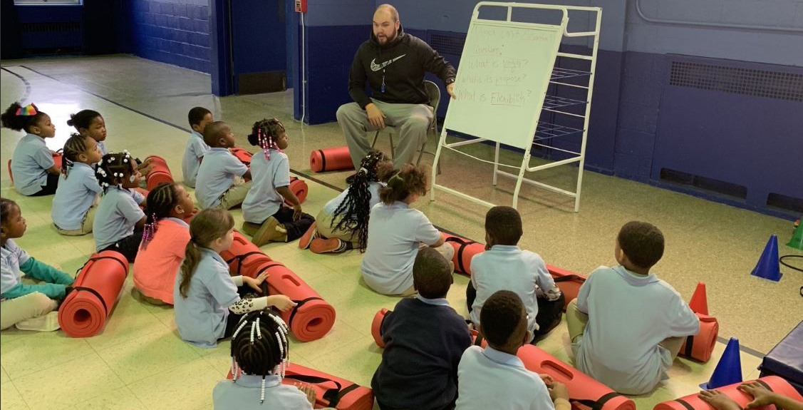 On Friday, January 11, 2019, the students at the Citizenship Academy are spending time developing mind-body awareness, improving self-regulation, and cultivating physical fitness. Want to know how? Mr. Eckert, our physical education instructor, is demonstrating the value of flexibility, breathing, and relaxation through the practice of Yoga. Way to go, Mr. Eckert. Thank you for helping us build success one ATOM at a time.