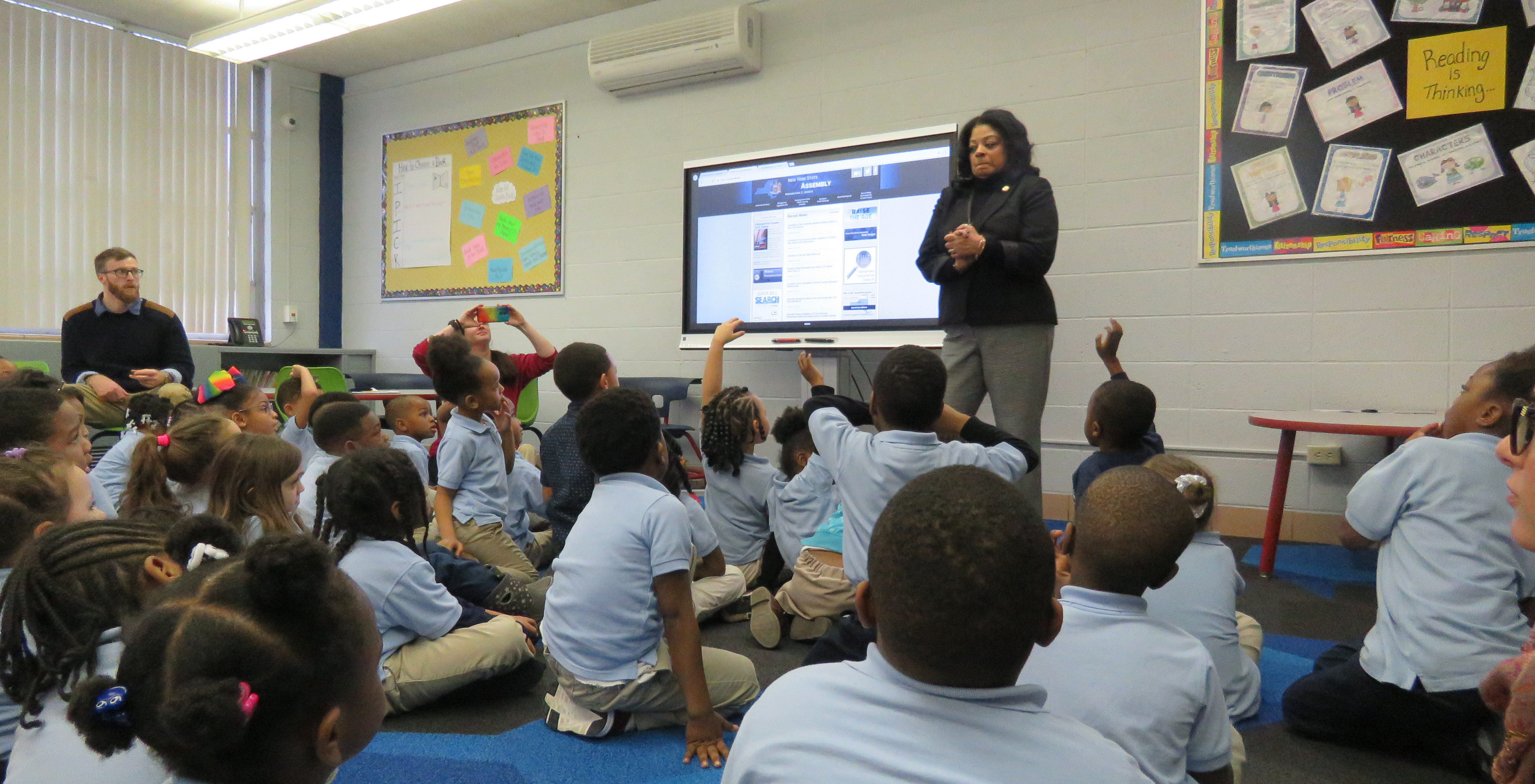 On Wednesday, February 6, 2019, in an effort to expand the reach of reading enrichment from the classroom to the community, NY State Assemblywoman of the 128th District Pamela Hunter visited SASCCS kindergarten and third grade classes to discuss the importance of reading and writing. She enthusiastically expressed her commitment to education by participating in an activity with the students.