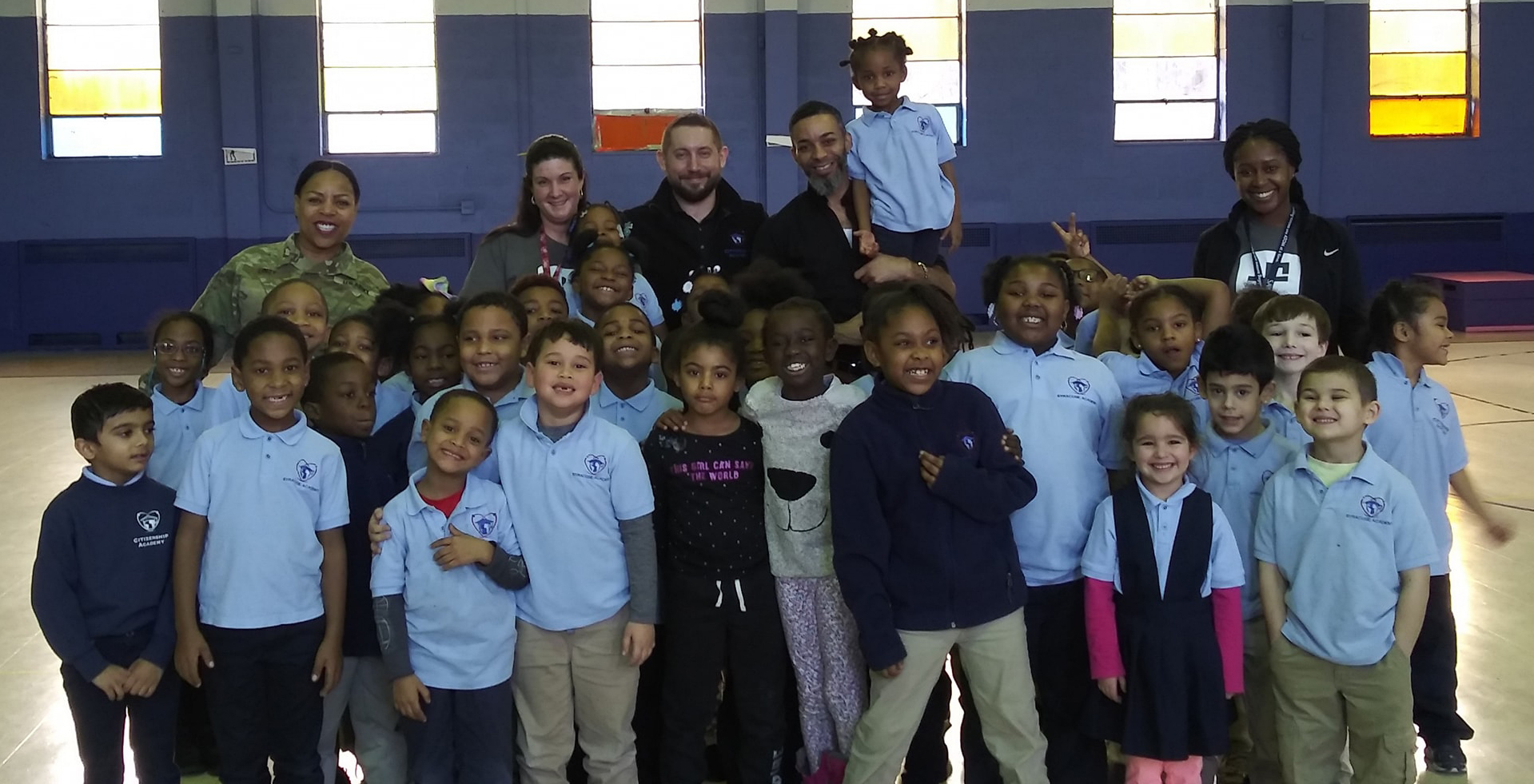 On Friday February 8, 2019, SFC Ruby Linzy and Dr. Emad Rahim brought music and inspiration to SASCCS at a recent assembly in the school gym. Ruby Linzy spoke about her mother, Joanne Louise Frazer, the first African American woman to play the piano in the U.S. Army. Dr. Emad “DJ Plain Truth” Rahim spoke with great enthusiasm about his love for music.