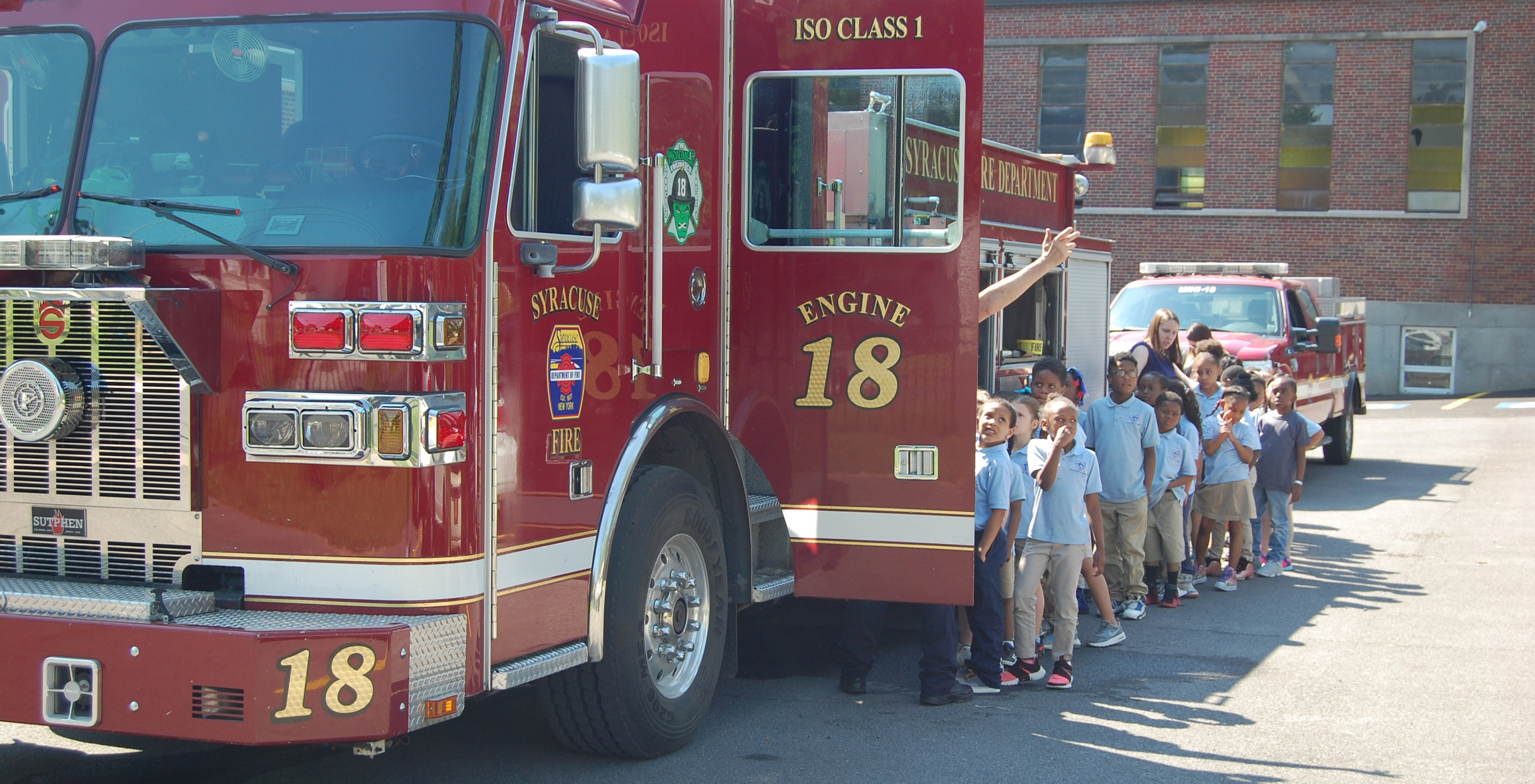 On Tuesday, May 29, 2018, members of the Syracuse Fire Department visited each classroom to discuss fire safety with the students. The firefighters talked about what to do if they smell smoke, if their clothes catch fire, and how to get out of a building quickly and safely. They also stressed the importance of following a firefighters directions if they come into their home or school to help them. The students were able to see all the equipment the firefighters wear to fight fires, and they were even able to sit in a real fire truck. Go atoms! #SASCAtoms #SASCCS