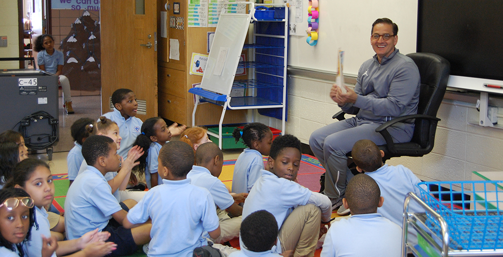 On Thursday, May 31, 2018, the Syracuse Stallions Head coach Peter Dourdas visited our second-grade #SASCAtoms. Coach Dourdas read the story "Allie's Basketball Dream" by Barbra E. Barber and Darryl Ligasan and talked about his life experience and wisdom with school, college, and basketball. #SASCCS would like to thank Coach Dourdas for visiting as well as Congratulations and good luck in the upcoming season. Go Stallions! #SASCCS #SASCAtoms
