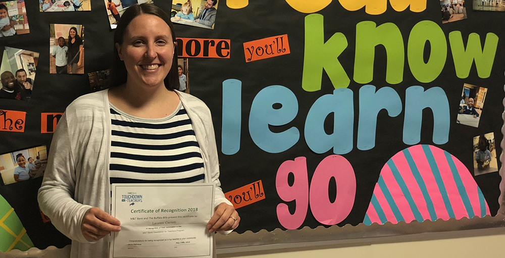 On Wednesday, June 6, 2018, our special education teacher, Mrs. Carioti received word from M&T Bank and The Buffalo Bills "Touchdown for Teachers" program that she was a nominated teacher. The program recognizes educators for their above and beyond contributions to their students and community at large. Go Mrs. Carioti and thank you for all you do. #SASCAtoms #SASCCS